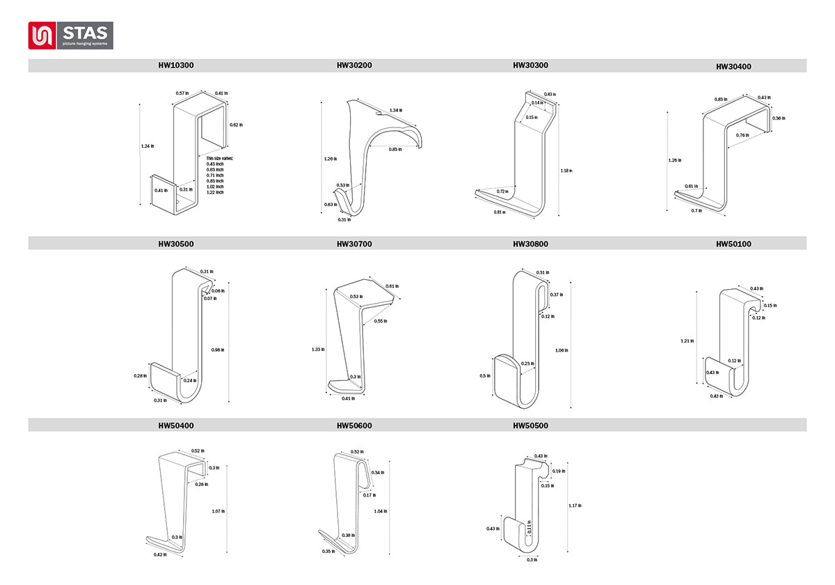 Suitable for traditional picture rail mouldings (wooden picture rail).Color: chrome / natural aluminum. Use with STAS cord with loop and zipper hooks (not included).